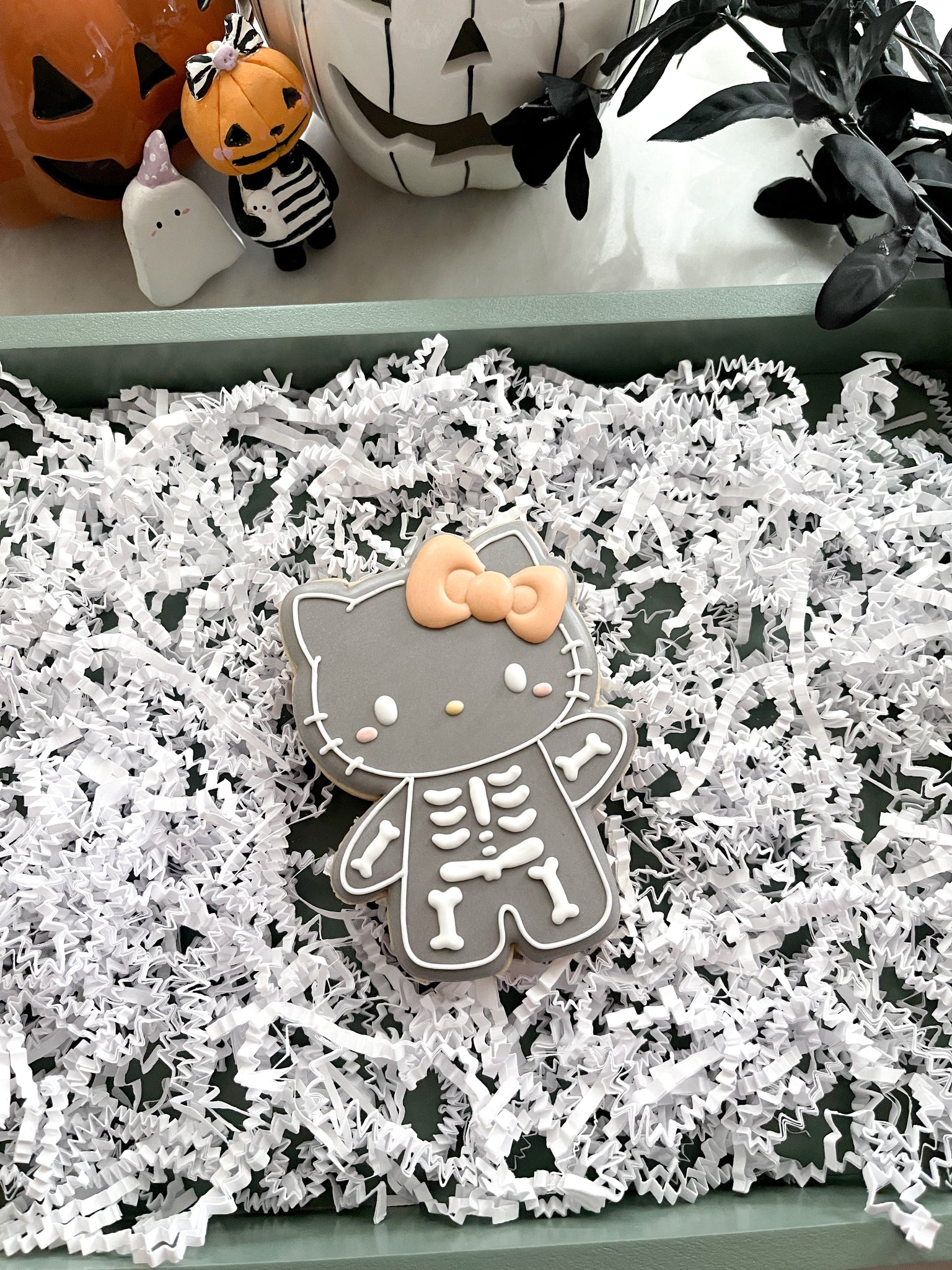 One regular size vanilla cookie, heat sealed in cello bag with a bow.
